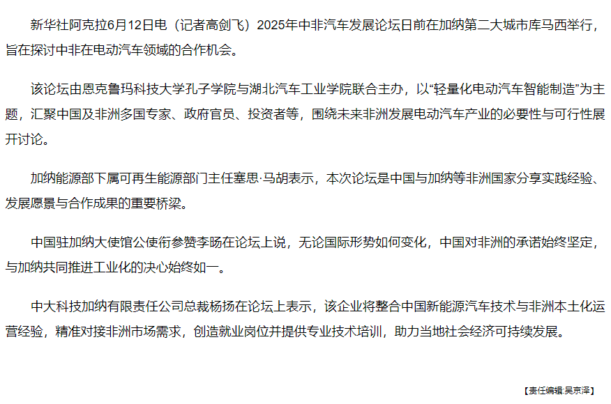 【新华网】中非汽车发展论坛探讨加强新能源汽车合作